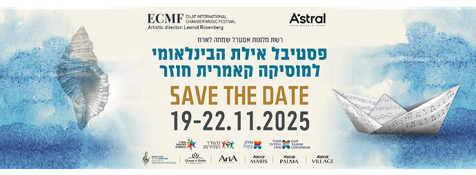 Международный фестиваль камерной музыки в Эйлате вновь возвращается на сцену, объявляя о продолжении одного из самых значительных и вдохновляющих культурных событий Израиля. С 2005 года фестиваль стал домом для камерной музыки высокого уровня, объединяя исполнителей и слушателей, стирая границы между странами и культурами и создавая неповторимую атмосферу искусства на фоне пейзажей Красного моря.